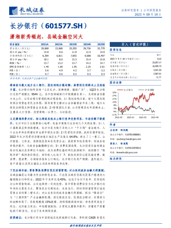 【长城证券】【20230919】潇湘新秀崛起,县域金融空间大-36页 行业研究