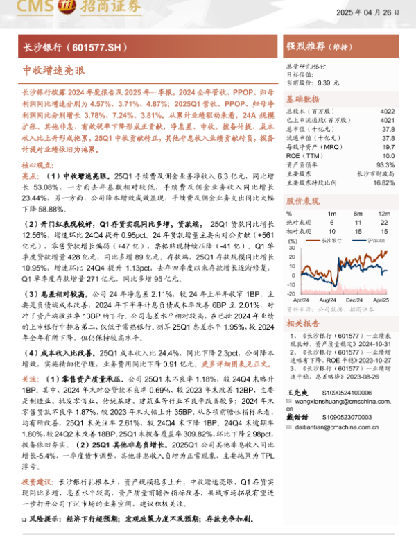 【海通证券】【20250426】长沙银行(601577)中收增速亮眼-19页 公司研究