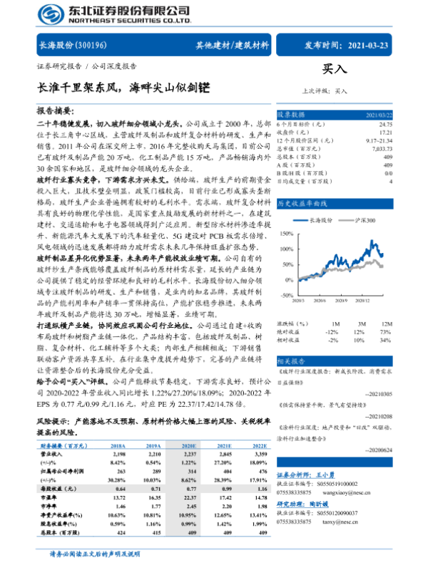 【广发证券】【20200722】长海股份(300196.SZ):玻纤一体化小龙头,步入扩张大周期-29页 行业研究