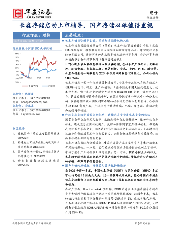 【华安证券】【20250707】长鑫存储启动上市辅导_国产存储双雄值得重视-3页 行业研究