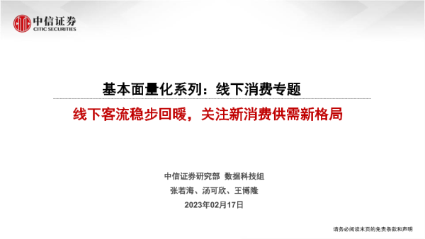 【中信证券】【20230217】基本面量化系列:线下消费专题,线下客流稳步回暖,关注新消费供需新格局-22页 行业研究
