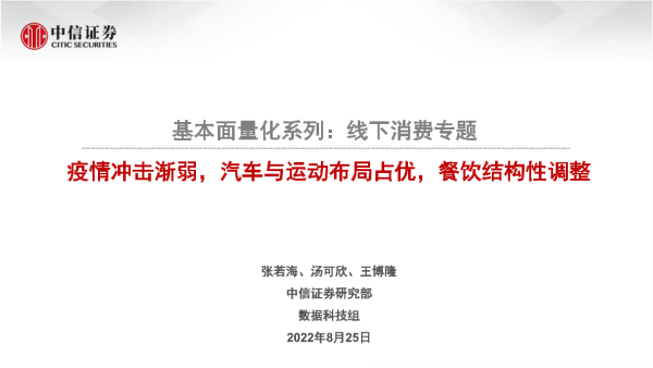 【中信证券】【20220825】基本面量化系列:线下消费专题,疫情冲击渐弱,汽车与运动布局占优,餐饮结构性调整-19页 行业研究