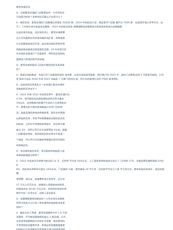 【蜜雪冰城】【20240403】蜜雪冰城交流纪要-调研纪要-4页 会议纪要