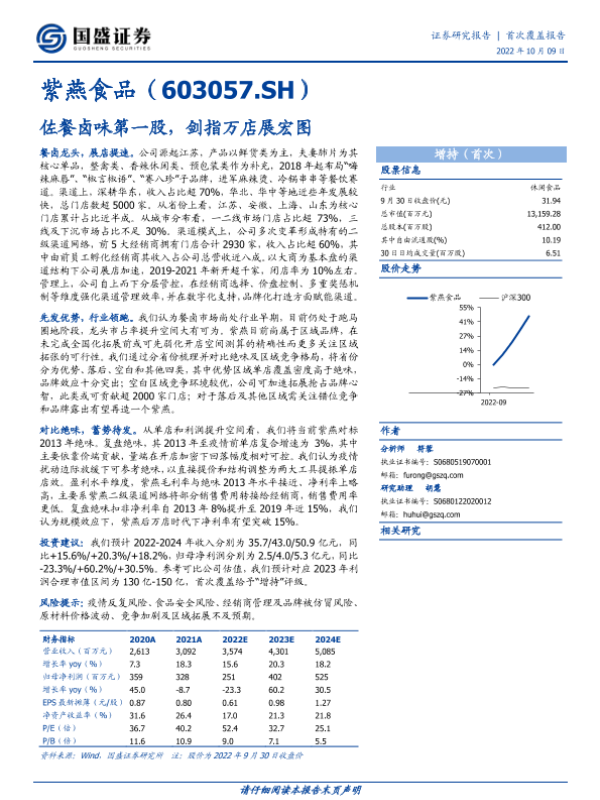【国盛证券】【20221009】紫燕食品(603057.SH)佐餐卤味第一股,剑指万店展宏图-38页 行业研究