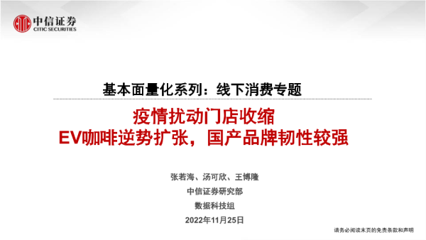 【中信证券】【20221125】基本面量化系列:线下消费专题,疫情扰动门店收缩,EV咖啡逆势扩张,国产品牌韧性较强-20页 行业研究