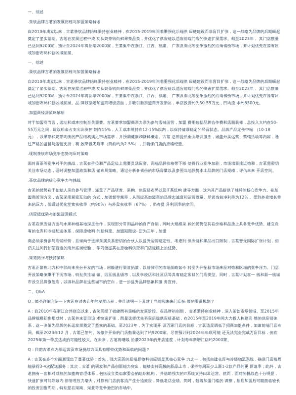 【古茗】【2023】茶饮品牌古茗的发展历程与加盟策略解读-4页 行业研究