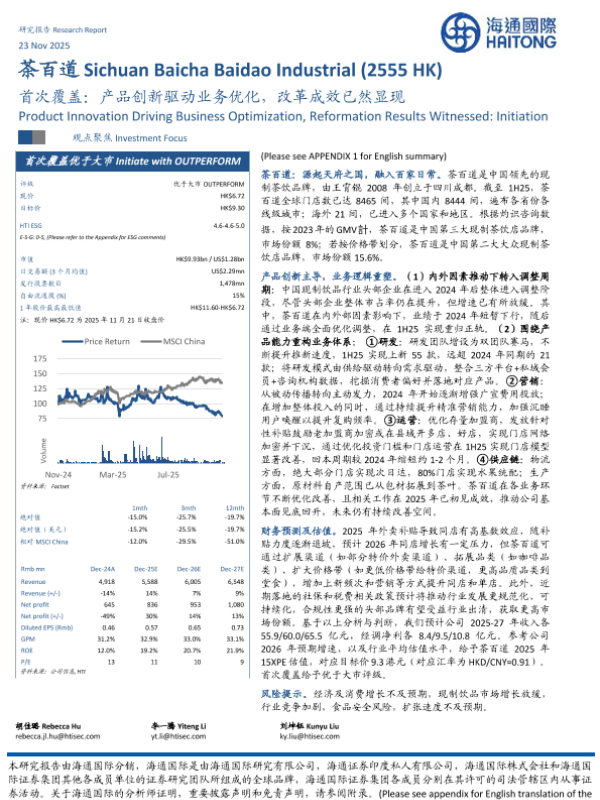 【海通国际】【202511】茶百道首次覆盖:产品创新驱动业务优化,改革成效已然显现-24页 证券期货研究报告
