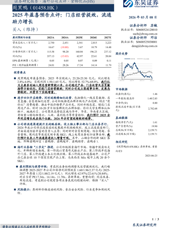 【东吴证券】【202603】2025年盈喜预告点评:门店经营提效,流通助力增长-3页 证券期货研究报告