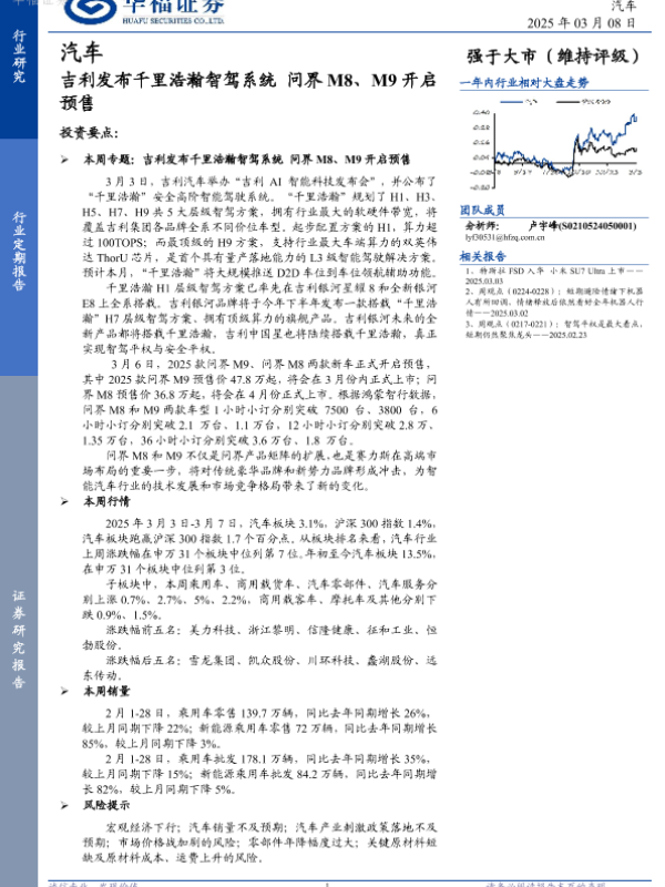 【华福证券】【20250308】吉利发布千里浩瀚智驾系统 问界M8、M9开启预售-12页 行业研究