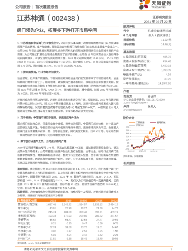 【天风证券】【20210222】江苏神通-002438.SZ-阀门领先企业,拓展多下游打开市场空间-24页 行业研究