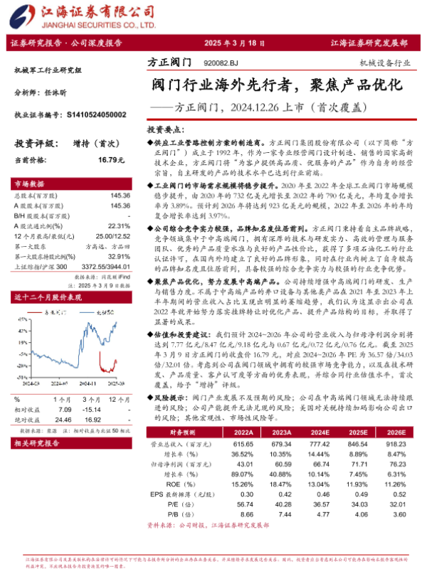 【江海证券】【20250318】方正阀门-920082.BJ-上市(首次覆盖):阀门行业海外先行者,聚焦产品优化-41页 行业研究