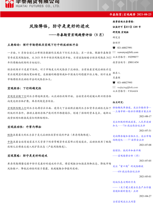 【华泰期货】【20210823】宏观趋势评估(8月):风险降临,防守是更好的进攻-16页 行业研究