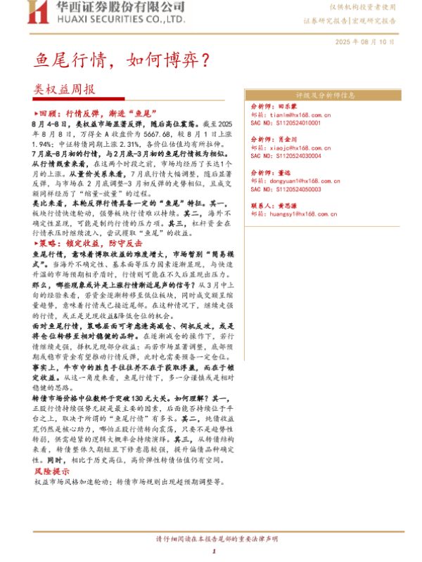 【华西证券】【20250810】类权益周报:鱼尾行情,如何博弈?-26页 证券期货研究报告