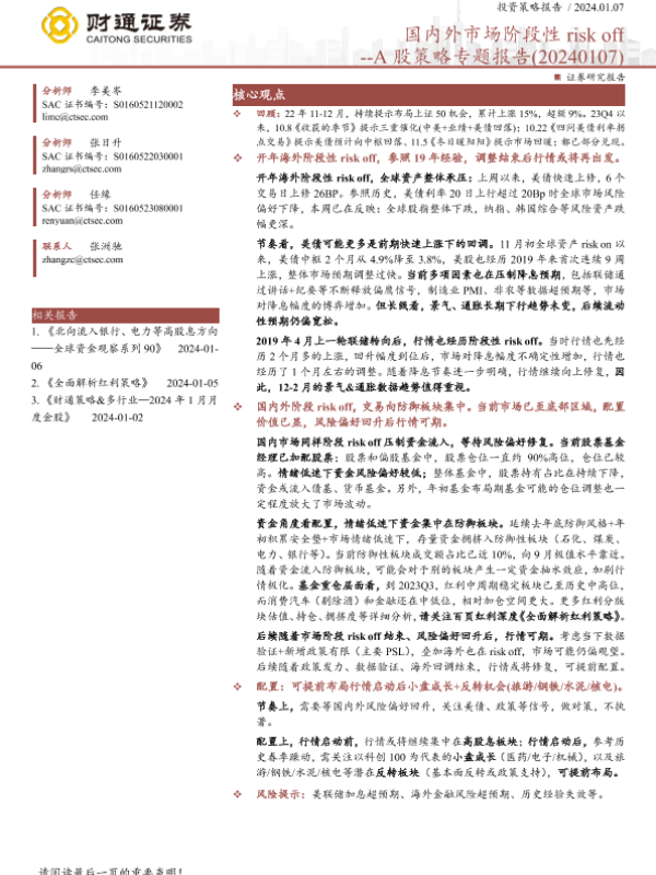 【财通证券】【20240107】国内外市场阶段性risk_off--A股策略专题报告-9页 行业研究