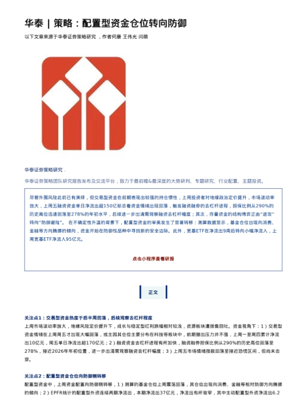 【华泰证券】【202603】配置型资金仓位转向防御-28页 证券期货研究报告