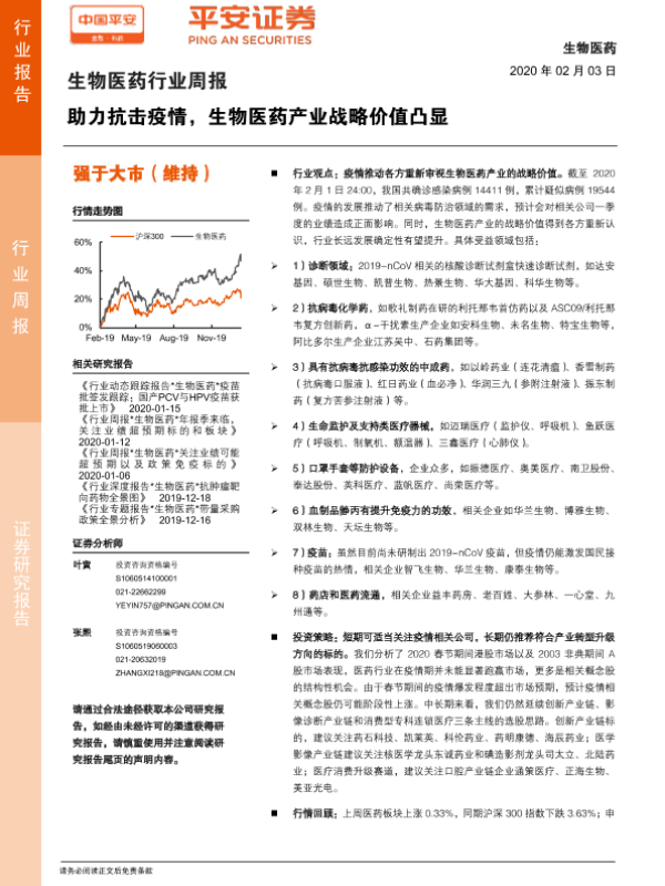 【平安证券】【20200203】生物医药行业周报:助力抗击疫情,生物医药产业战略价值凸显-8页 行业研究