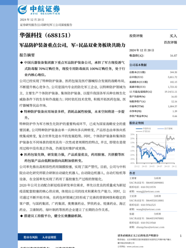 【中航证券】【20241220】华强科技(688151)军品防护装备重点公司,军+民品双业务板块共助力-27页 行业研究