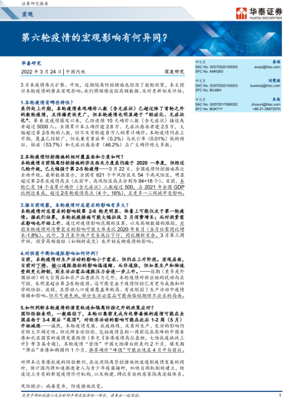 【华泰证券】【20220324】宏观深度研究:第六轮疫情的宏观影响有何异同?-20页 行业研究