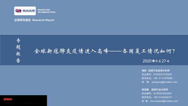 【信达证券】【20200427】全球新冠肺炎疫情进入高峰——各国复工情况如何?-59页 行业研究