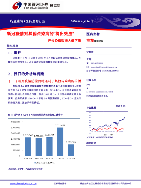 【银河证券】【20200616】新冠疫情对其他传染病的‘挤出效应’——评传染病数据大幅下降-9页 行业研究