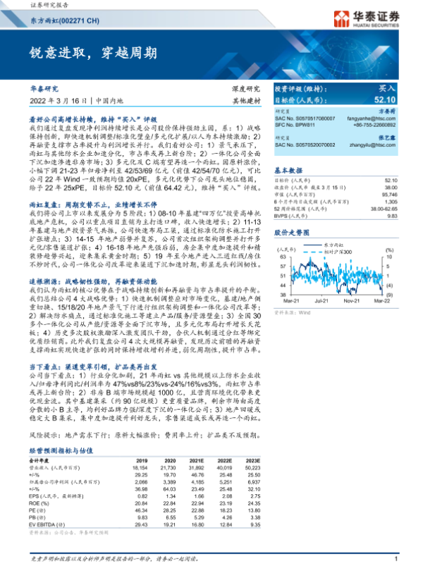 【华泰证券】【20220316】东方雨虹(002271 CH)锐意进取,穿越周期-31页 行业研究