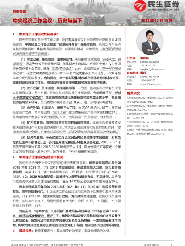 【民生证券】【20231213】利率专题:中央经济工作会议:历史与当下-18页 宏观策略