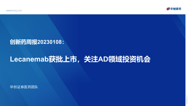 【华创证券】【20230108】创新药周报:Lecanemab获批上市,关注AD领域投资机会-30页 行业研究