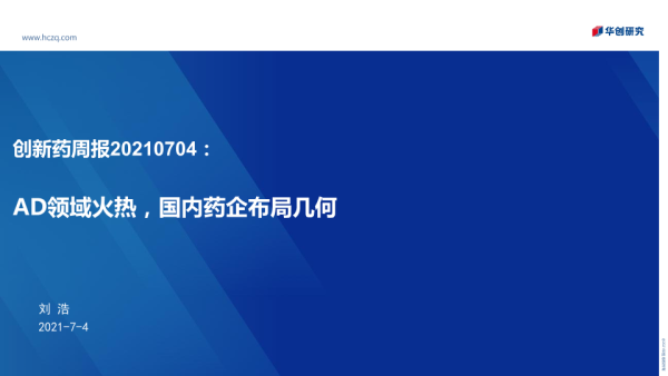 【华创证券】【20210704】创新药周报:AD领域火热,国内药企布局几何-23页 行业研究