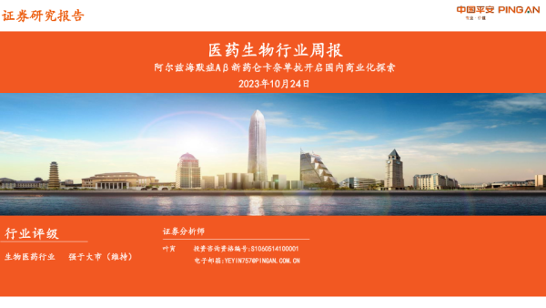【平安证券】【20231024】医药生物行业周报:阿尔兹海默症Aβ新药仑卡奈单抗开启国内商业化探索-12页 行业研究