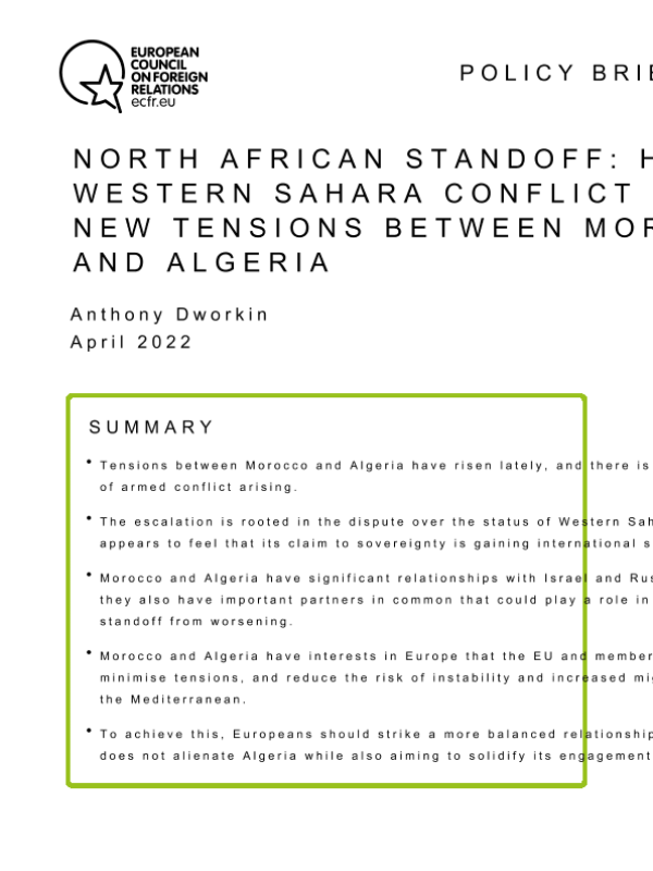 【欧洲对外关系委员会】【20220401】北非对峙:西撒哈拉冲突如何加剧摩洛哥和阿尔及利亚之间的新紧张局势-17页 行业研究