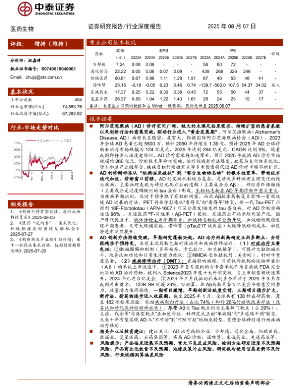 【中泰证券】【202507】医药生物行业:诊断、治疗加速发展,AD广阔市场值得关注-250807-中泰证券-37页.pdf-37页 行业研究