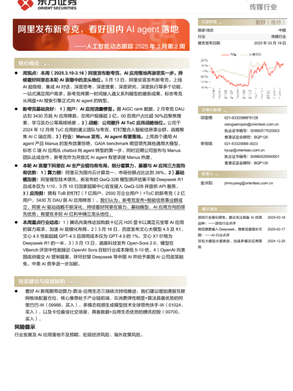 【东方证券】【20250319】2025年3月第2周:阿里发布新夸克,看好国内AI agent落地-23页 行业研究