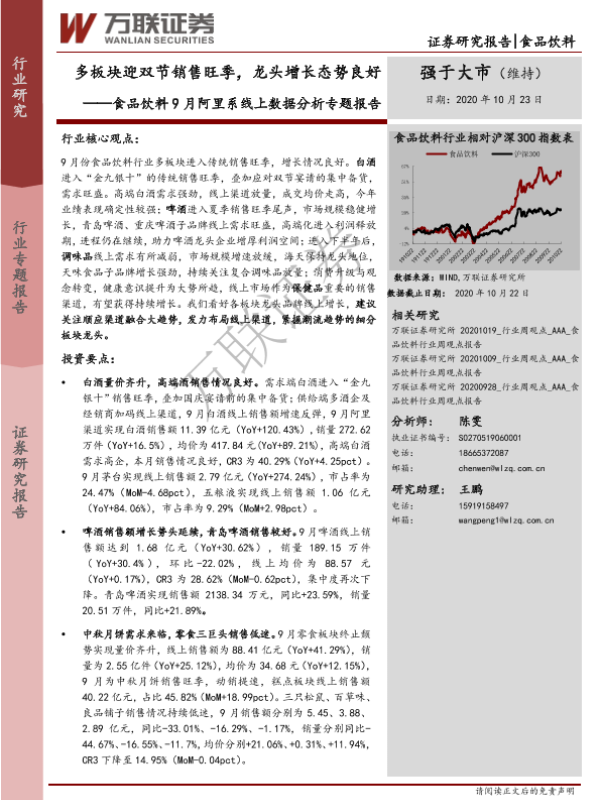 【万联证券】【20201023】食品饮料9月阿里系线上数据分析专题报告:多板块迎双节销售旺季,龙头增长态势良好-25页 行业研究