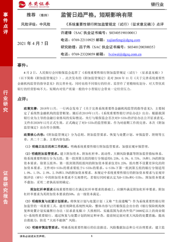 【东莞证券】【20210407】《系统重要性银行附加监管规定(试行)(征求意见稿)》点评-4页 行业研究
