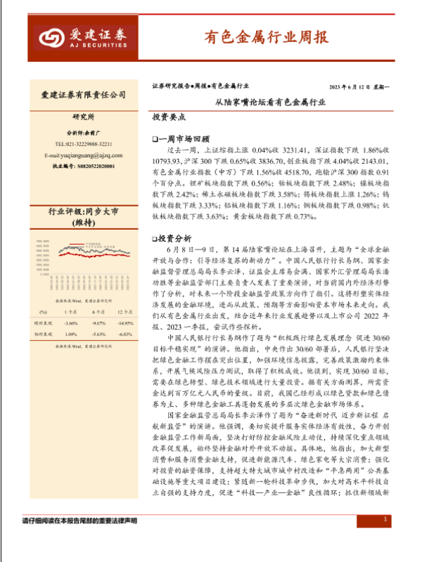 【爱建证券】【20230612】20230612-爱建证券-有色金属行业周报:从陆家嘴论坛看有色金属行业-41页 行业研究