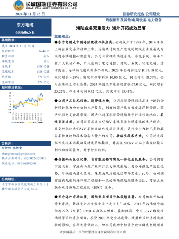 【长城国瑞证券】【20241125】东方电缆-603606.SH-海陆业务双重发力 海外开拓成效显著-29页 行业研究