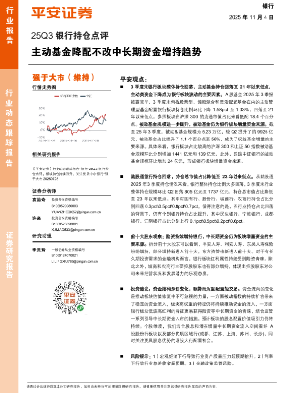【平安证券】【2025】25Q3银行持仓点评:主动基金降配不改中长期资金增持趋势-10页 证券期货研究报告