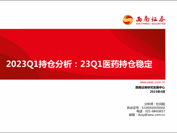 【西南证券】【20230427】医药行业2023Q1持仓分析:23Q1医药持仓稳定-24页 行业研究