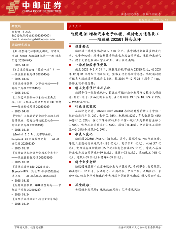 【中邮证券】【20250413】陆股通2025Q1持仓点评-13页 证券期货研究报告