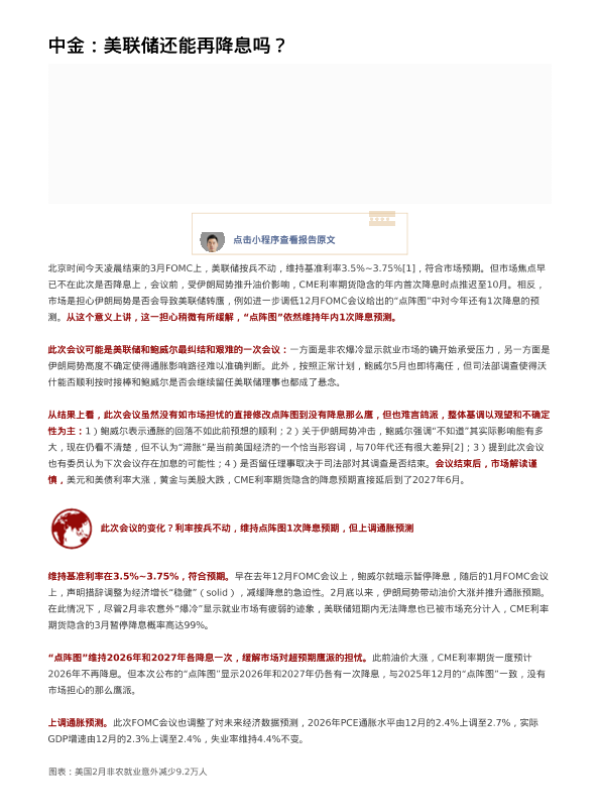 【中金公司】【202603】美联储还能再降息吗?-8页 证券期货研究报告