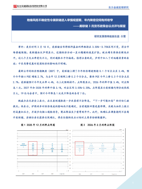 【东方金诚】【2024】地缘风险不确定性令美联储进入审慎观望期,年内降息空间有所收窄——美联储 3月货币政策会议点评与展望-4页 宏观策略