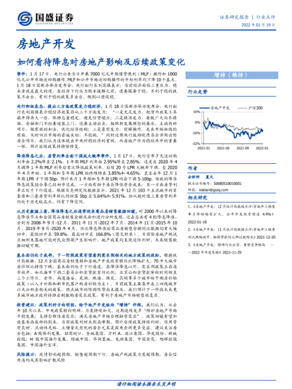 【国盛证券】【20220119】如何看待降息对房地产影响及后续政策变化-3页 行业研究
