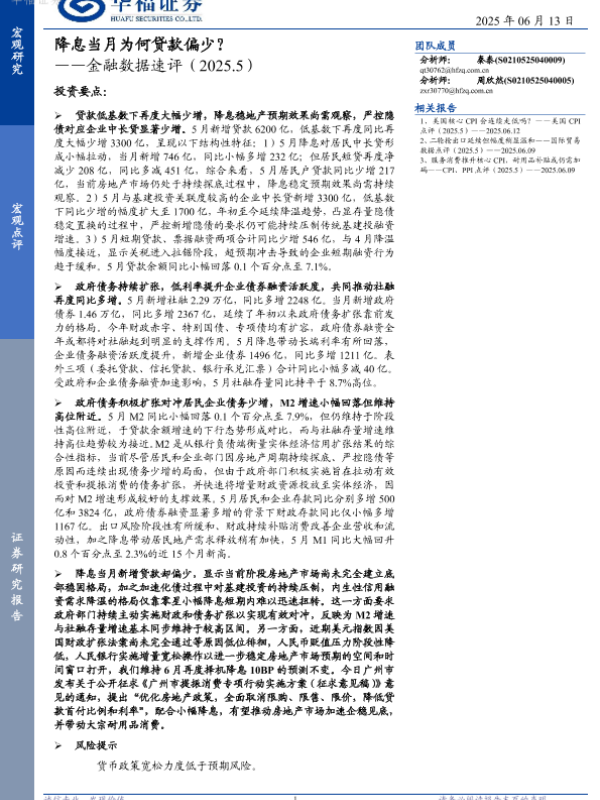 【华福证券】【20250613】降息当月为何贷款偏少-4页 宏观策略