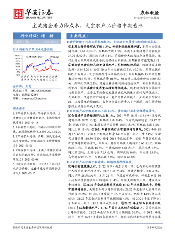 【华安证券】【20210523】20210523-华安证券-农林牧渔行业周报:主流猪企着力降成本,大宗农产品价格中期看涨-42页 行业研究