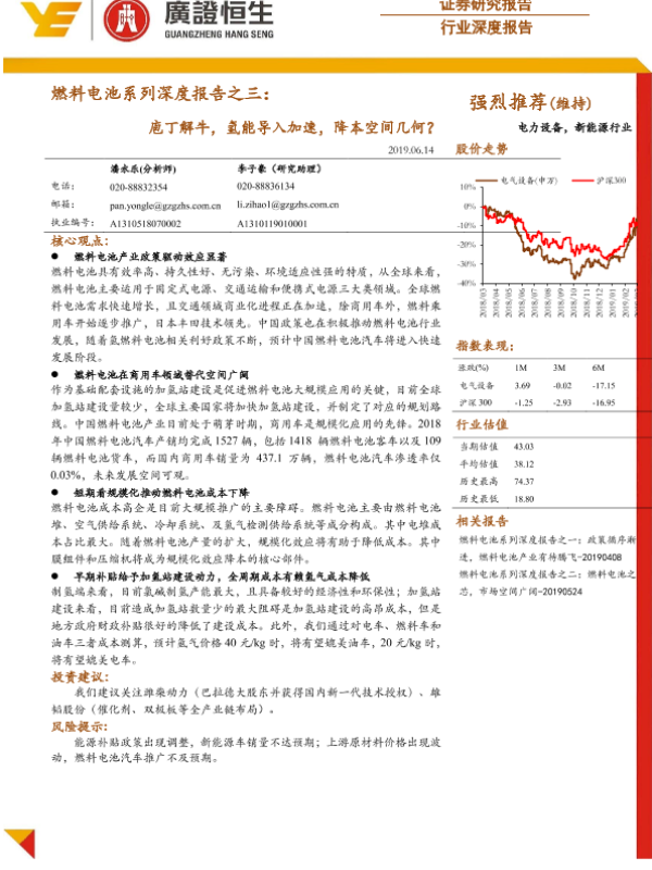 【广证恒生】【20190614】燃料电池系列深度报告之三:庖丁解牛,氢能导入加速,降本空间几何?-20页 行业研究