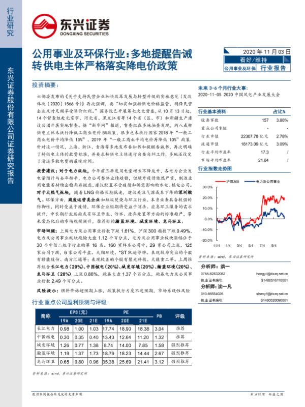 【东兴证券】【20201103】多地提醒告诫转供电主体严格落实降电价政策-7页 行业研究