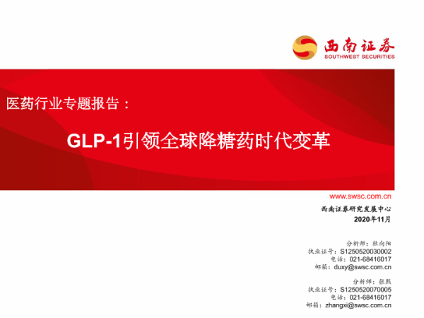【西南证券】【20201117】GLP-1引领全球降糖药时代变革-59页 行业研究