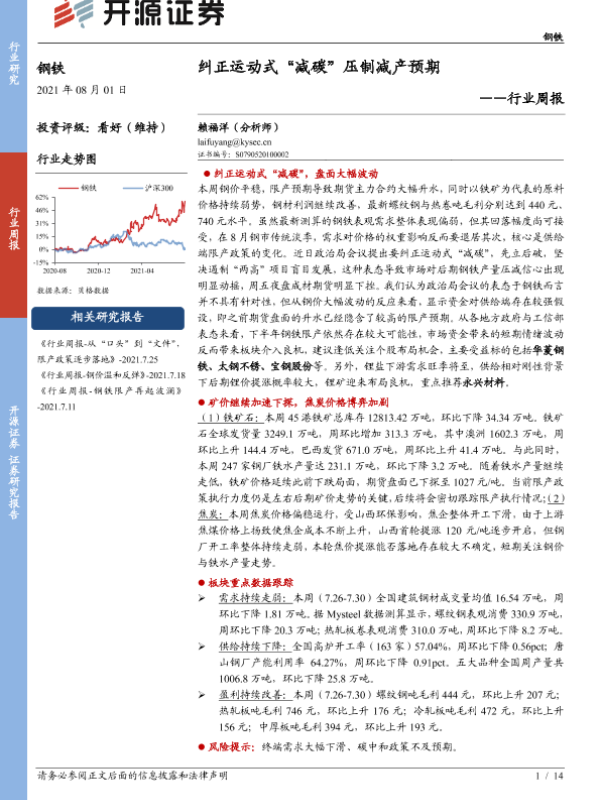 【开源证券】【20210801】20210801-开源证券-钢铁行业周报:纠正运动式“减碳”压制减产预期-14页 行业研究