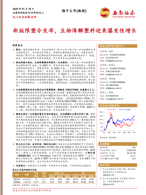 【西南证券】【20200119】化工行业政策点评:新版限塑令发布,生物降解塑料迎来爆发性增长-3页 行业研究