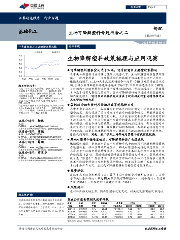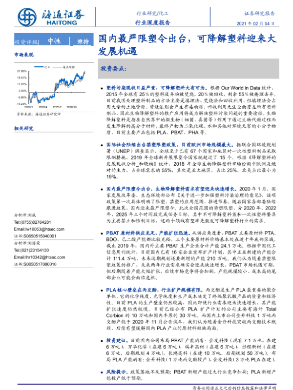 【海通证券】【20210204】20210204-海通证券-化工行业深度报告:国内最严限塑令出台,可降解塑料迎来大发展机遇-18页 行业研究